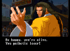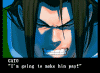 Gato appears to have a vision of his past and his father, and angrily swears